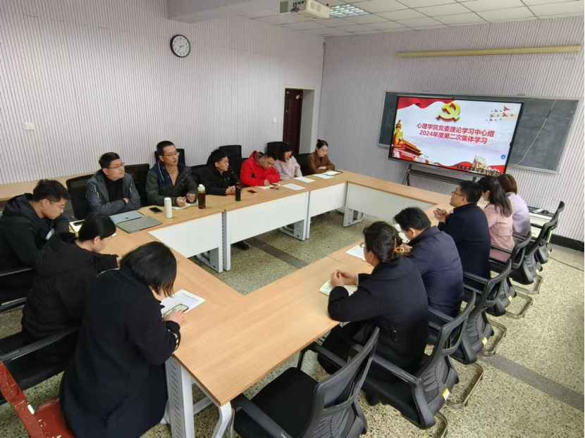 党委理论学习中心组在201会议室举行了2024年度第二次集体学习活动。理论中心组成员出席会议,基础心理学教研室主任杨庆、发展与教育教研室主任陈圣栋、应用心理学教研室主任王修欣列席会议,会议由蜘蛛直播官网