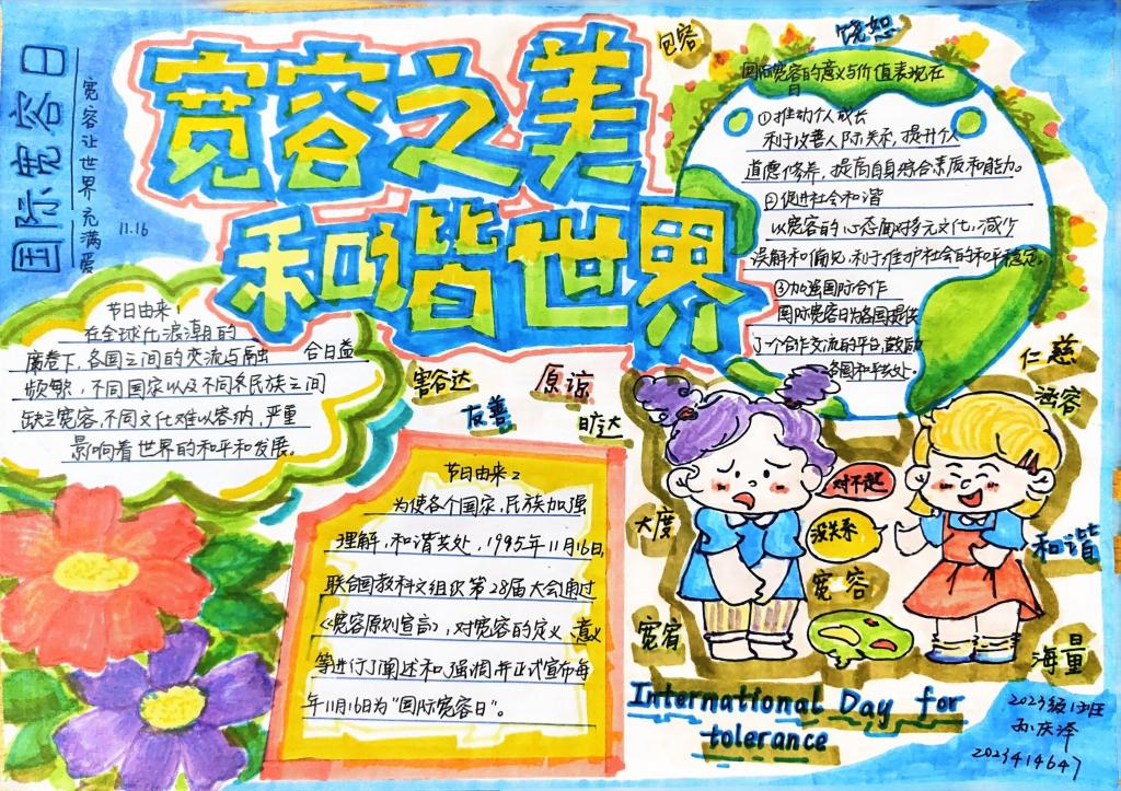 蜘蛛直播官网 “宽容之美,和谐世界”2024年国际宽容日手抄报活动作品展