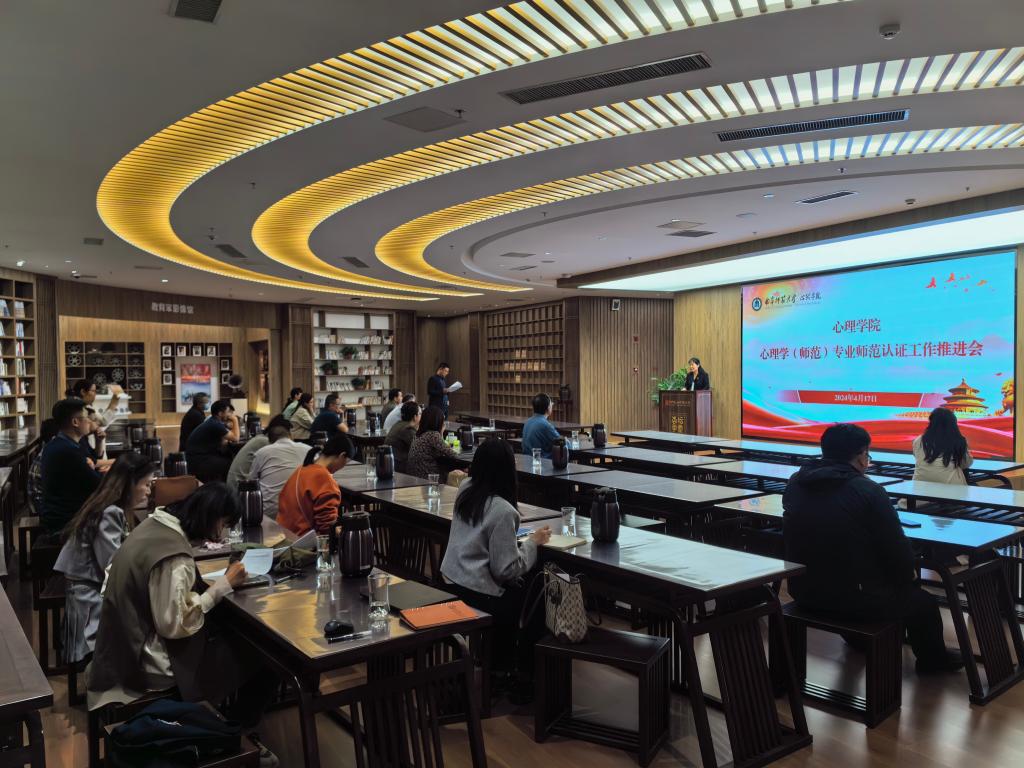 工作的重中之重,要求在认证的过程中要始终坚持和贯彻“以评促建,以评促改,评建并举,重在内涵”的指导思想。同时,对下一步师范类专业认证工作进行了工作部署,要求每位老师都要高度重视并参与到师范专业认证工作中来,学习好认证知识,贯彻好认证理念,组织好认证材料,团结合作,迎难而上,确保认证工作顺利推进并取得优异成绩。本次会议对促进心理学师范认证工作的顺利开展具有重要推动意义。