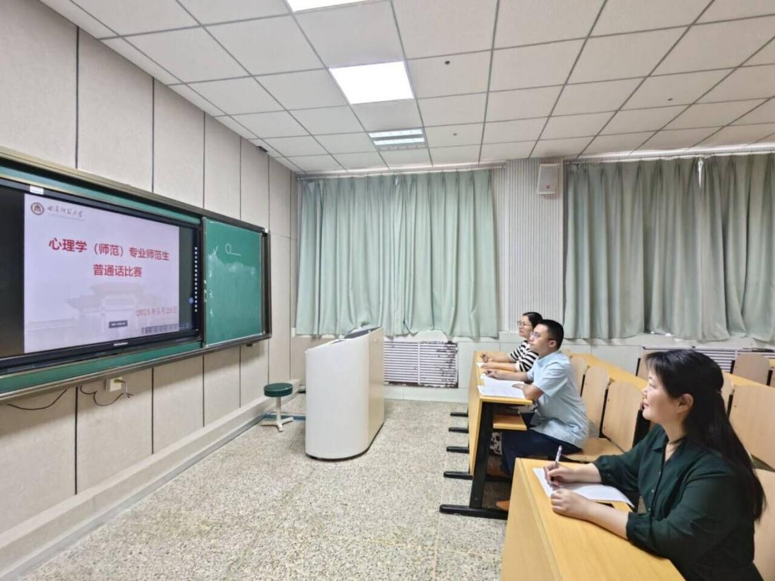 于5月29在院102室开展心理学(师范)专业师范生普通话评选,本次比赛特邀李海青副院长、孙传波老师、杨加芹老师担任评委。