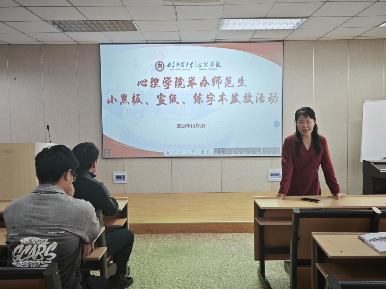 415教室举办了师范生小黑板、宣纸、练字本发放活动。院长何文广、副院长李海青出席本次发放仪式,我院部分学生参与本次活动。
