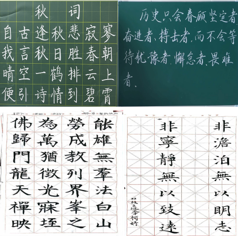汉字之美,美在形体,美在风骨,美在神韵。学生们怀着对书法的热爱和追求,相聚在这场比赛中,展现他们的专业素养和艺术才情。钢笔字书写规范流畅,线条优美,展现出扎实的硬笔书法功底;毛笔字挥毫泼墨,笔走龙蛇,或苍劲有力,或婉约细腻,尽显中华传统文化的魅力;粉笔字工整美观,布局合理,一笔一划都彰显着同学们的严谨与认真。