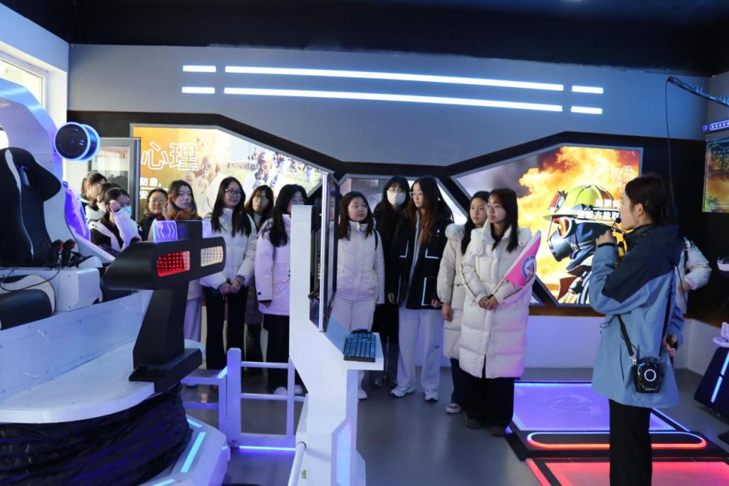 见习期间,学生们参观了基地的各个功能室,详细了解基地的设施设备和运营模式。在实验心理学体验室,学生们参与了注意力和思维的实验,实际操作让那些抽象的心理现象变得具体可感。情绪稳定性训练室则提供了实时情绪反馈,帮助学生们识别自己的情绪状态,学习如何自我调节,以更好地应对生活中的压力和挑战。