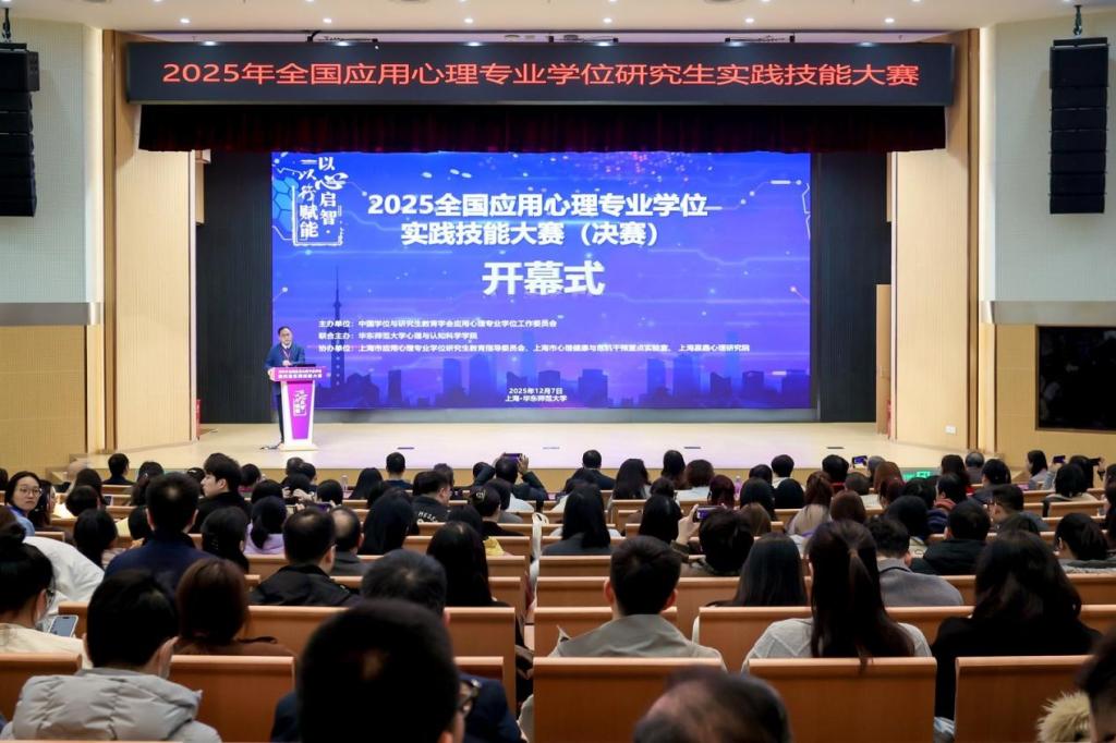 为落实国家应用心理专业学位研究生教育改革相关部署,着力提升研究生实践创新能力,2025 年全国应用心理专业学位研究生实践技能大赛于 12 月 6 日至 7 日在华东师范大学顺利举办。本次赛事由全国应用心理专业学位研究生教育指导委员会指导、中国学位与研究生教育学会应用心理专业学位工作委员会主办,是我国应用心理专业学位领域规格最高、影响力最强的专业赛事。
