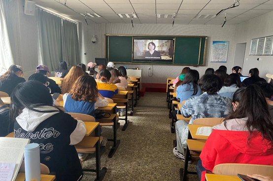 部分成员在院楼411教室观看“同上一堂‘平凡英雄·青春百年’思政大课”网络直播课程
