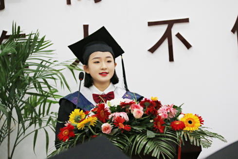 毕业生代表金龙梅,讲述了自己四年前稚气未脱来到曲阜师大求学,从当时的懵懂迷惑到现在的胸有成竹,一步步在老师的教诲和关心下成长的故事,表达了对校园的眷恋、对师长的感激、对母校的祝愿。