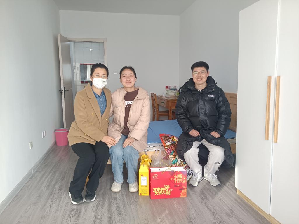 党委副书记朱伟卫、辅导员贺现网前往该学生住处看望并送上新春祝福和春节慰问品。