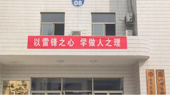 在院楼贴挂“以雷锋之心,学做人之理”学习雷锋精神标语横幅