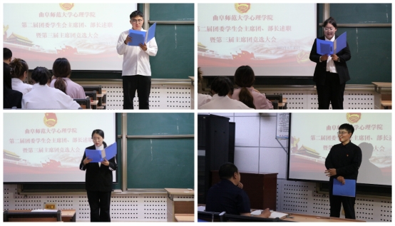 团委学生会部长候选人依次作竞选演讲。各候选人主要围绕自我介绍、工作经历、竞选优势、未来展望四个方面展开,进行精彩的发言,候选人们满怀热情和信心,充分展示了自己的工作能力和独特风采。
