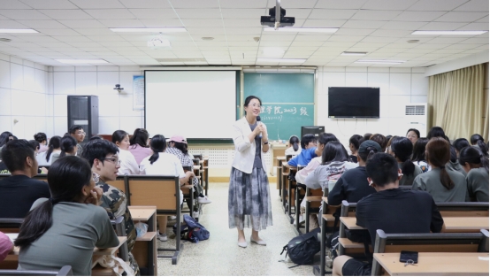 党委副书记朱伟卫就职业生涯规划展开讲解,2023级全体新生参会。