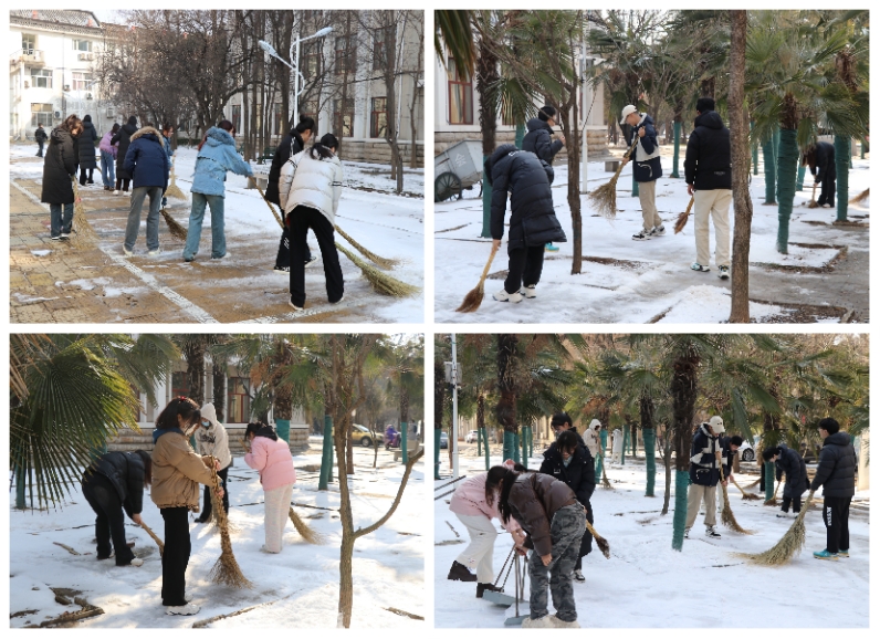 志愿者们有序分工开展清雪活动并作简单的分工,对教学8号楼及周边区域进行分区清扫,提高清扫效率,确保安全有序。活动期间,全体志愿者积极踊跃参与,现场氛围浓厚,志愿者们干劲十足,清雪除冰热情高涨,争分夺秒将积雪清扫得整洁干净,清理出干净安全的学习和生活环境。活动不仅让志愿者们感受到了团队合作的力量,也体会到了奉献的温度,志愿服务的热情感染着同学们从小事做起,以实际行动践行雷锋精神。