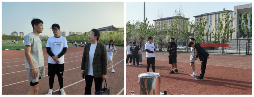 朱伟卫亲临训练场指导训练开展情况。朱伟卫详细了解各项目的训练进度,肯定同学们的努力和付出,叮嘱同学们在训练时注意方式方法,守好安全底线。同时,她强调运动着装问题,在训练场上着运动装可以更好的保障训练安全和提高训练效率。最后,朱伟卫希望运动员们保持昂扬的斗志和顽强拼搏精神,全力认真对待训练,并预祝运动会取得优异成绩。