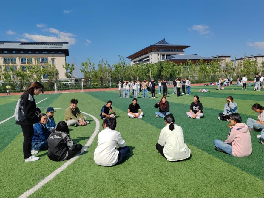 2024级新生团体心理辅导活动于新校区操场举行,2024级全体本科生积极参与。
