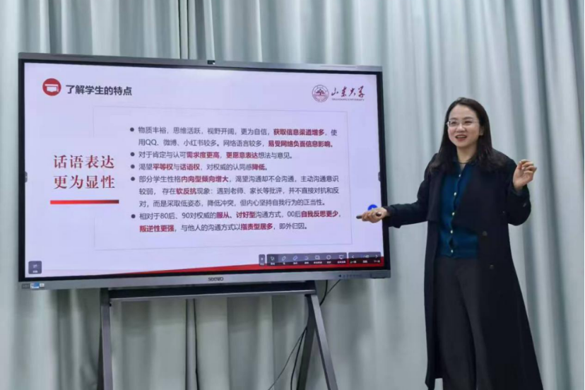 312室举行。“范蕊情感教育”工作室主持人、山东大学学生心理健康教育与咨询中心主任范蕊围绕“谈心谈话的原则与流程”从理论角度进行分享,并结合自身工作案例加以生动阐释。“心梦享”工作室主持人朱伟卫,从“何时进行谈心谈话”“谈心谈话的禁忌”等内容方面,强调了“三必谈”“四原则”,希望辅导员抓住时间、语境,用心用情用力做好谈心谈话工作。