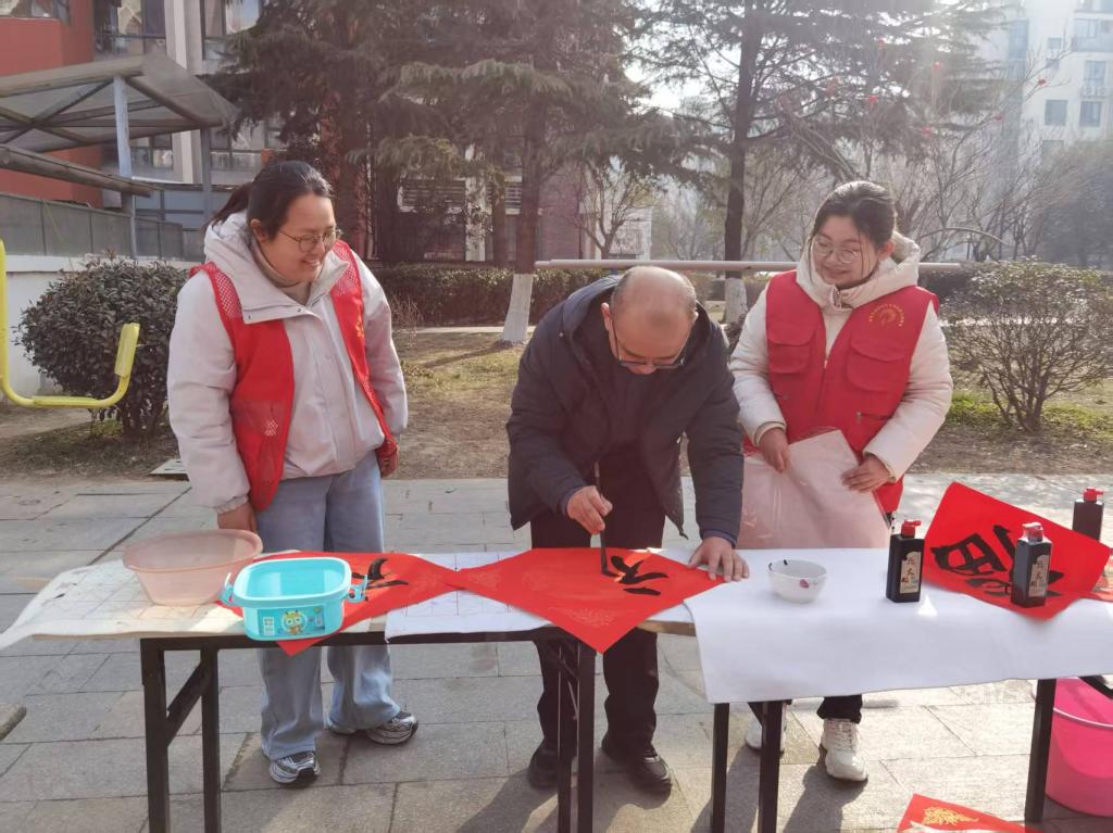 “微光如炬,情暖社区”实践队员指导社区居民体验书写春联福字
