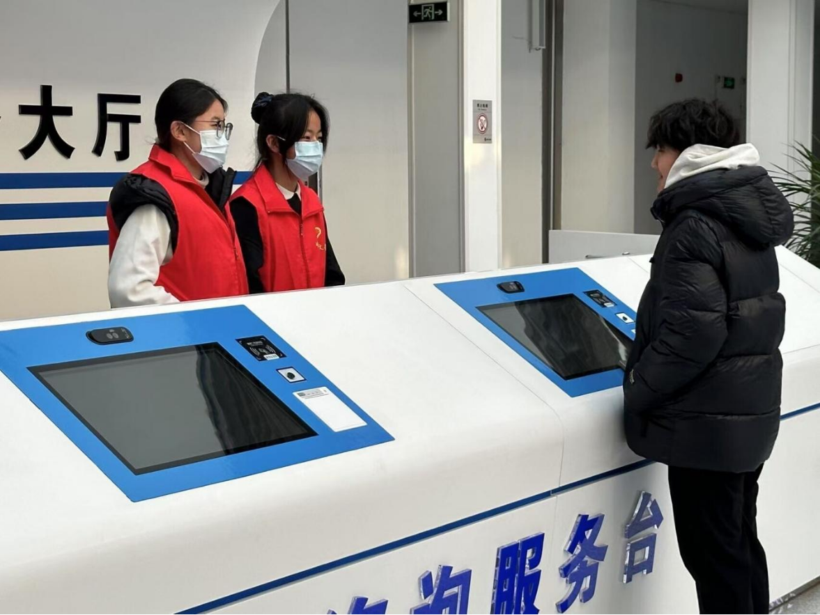 除了现场引导,引导员们还积极协助老年人、残疾人等特殊群体办理业务。他们全程陪同,帮忙填写表格、排队叫号,让特殊群体感受到政务服务的关怀与温暖。在忙碌的服务大厅里,实践队员的热情与耐心感染着每一个人。