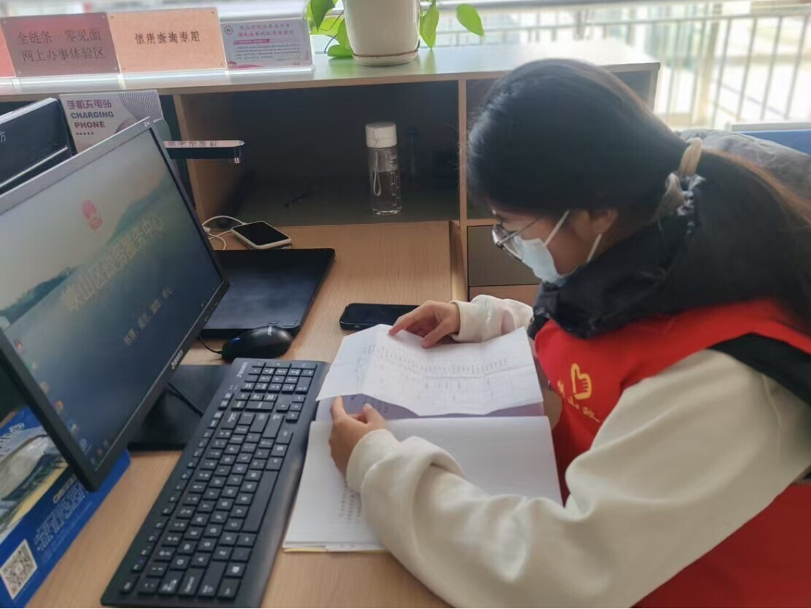 “慧聚社区,繁星筑梦”实践队队员协助政务服务中心整理文件