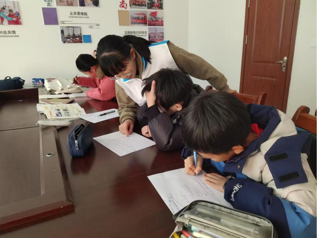 实践队队员正专注辅导孩子做作业。遇到数学公式理解难题,队员拿纸笔推导;面对作文困惑,队员引导孩子回忆趣事组织语言。孩子恍然大悟时,队员欣慰微笑,轻声鼓励并传授学习方法,助力孩子养成良好习惯,在知识海洋稳步前行。