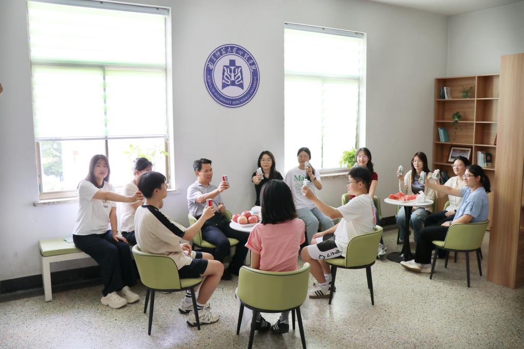 座谈会伊始,何文广一改往日讲台上的严肃,他亲手为毕业生递上切好的西瓜,笑言:“这西瓜红瓤黑籽,恰似你们在心院的四年——红火的是青春,沉淀的是专业根基。”大家端起牛奶共同举杯,共话心理学人的使命——“既要保持科研的严谨,更要永葆助人的温情”。觥筹交错间,往日课堂上的理论争鸣化作此刻的温情流淌,窗外火热的阳光凝成眼底的不舍星光。