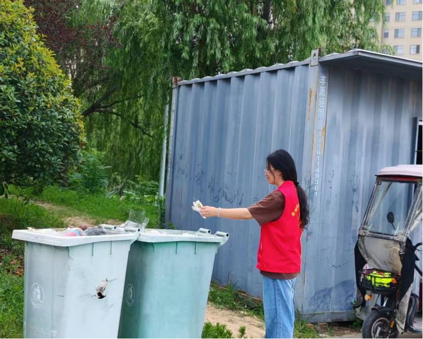 图3 实践队员将垃圾送至附近垃圾桶
