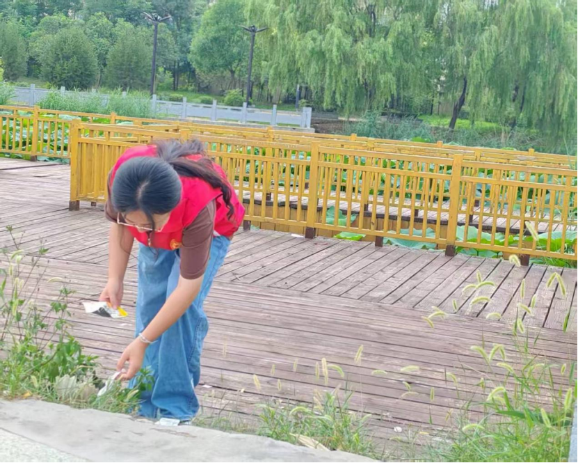 北河畔的夕照开始流淌一种熔金似的暖意。活动接近尾声,实践队员站在北河畔,看着清澈的河水倒映着晚霞,岸边不时有市民散步经过。每一个俯仰都如虔诚的俯首,每一次传递都似无声的誓约,实践队员展现出高效的协作能力与积极投入的热情,圆满完成了预定目标,用实际行动保护了生态环境,维护了河道安全。