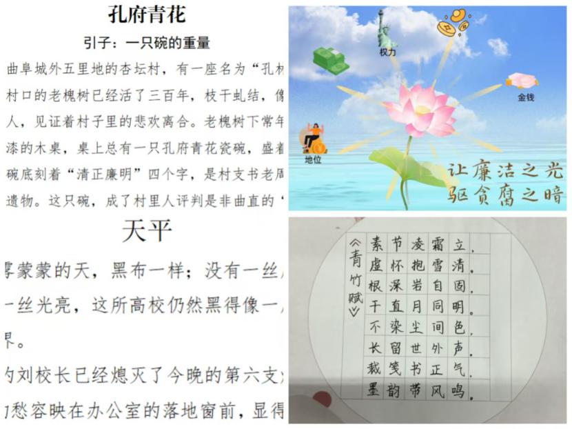 本次廉洁文化作品创作大赛的成功举办,具有重要的现实意义。不仅为同学们提供了一个展示才华的舞台,更重要的是,在全院营造了浓厚的廉洁文化氛围,提升了综合素养,培养了创新思维。通过创作和欣赏这些作品,廉洁理念更加深入人心,助力营造风清气正的校园及社会环境,传承和弘扬优秀廉洁文化。