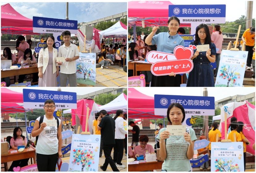 设置了特色摄影区,并提供“我在心院很想你”“相约心院”“心向曲园”等特色手举牌。新生们在此拍照留念,通过具象化的场景强化“心院学子”的身份认同,将这一刻的温馨定格为大学归属感与集体记忆的起点,为崭新的大学生活镌刻下充满仪式感的开篇序章。