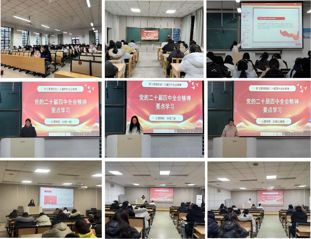 23级心理一班团支书孙庆泽、23级心理二班团支书刘涵睿表示,作为新时代青年,要将个人成长与国家发展紧密结合,坚定不移听党话、跟党走,在推进中国式现代化的实践中贡献青春力量。24级心理一班团支书牛雨晴、24级心理二班团支书刘浩然、24级心理公师班团支书周子萱表示,要以实际行动践行全会精神,从日常学习生活做起,锤炼专业本领,增强服务人民的意识与能力。25级心理一班团支书王悦、25级心理二班团支书朱翊菲、25级心理非师班团支书王梓华表示,要牢记初心使命,勇担时代责任,将心理学专业知识与社会实践紧密结合,关注青少年心理健康等社会需求,在志愿服务与基层治理中发挥专业特长,以青春之我投身民族复兴伟业。