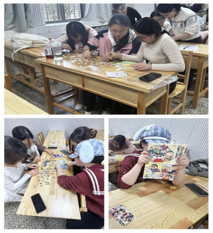 本次活动以团队赛形式开展,各小组先抽取拼图板块,再抽取对应推理题目;完成题目挑战后,方可获取完整拼图组件并正式开启拼合环节。活动现场,各小组围坐在一起,团队成员间分工协作、互相探讨,专注分析推理题的逻辑线索,结合已获拼图碎片推演整体图案布局;遇到解题瓶颈时,大家相互鼓励、反复梳理线索,力求突破。