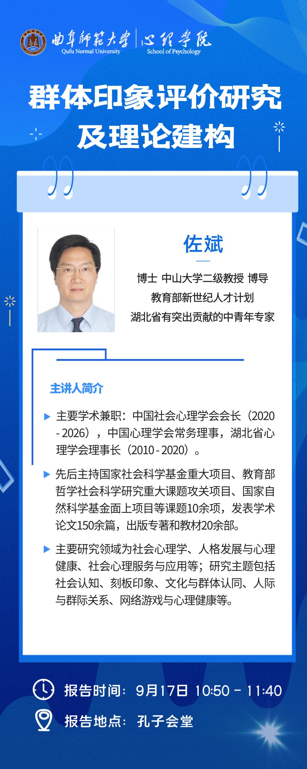 蜘蛛直播官网 2023金秋学术报告暨"国榕讲堂"学术讲座(四)|佐斌:群体印象评价研究及理论建构