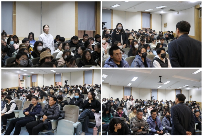 报告结束后进入互动阶段,在场师生积极向宋广文进行提问。周茂楠、周欣悦和龚圆圆三位同学分别从本科生如何研究文化心理学、不同学科的发展对心理学的影响以及心理学人的心理问题三方面向宋广文提出疑问。通过互动,大家对心理学的学习及研究有了更深刻的认识,为未来的学习和工作打下坚实基础。