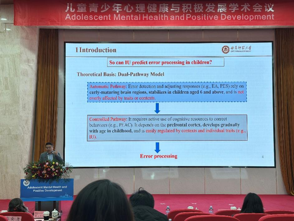 曲阜师范大学儿童青少年人格发展与教育中心主任杨庆副教授是省内(除东道主山东师大)唯一获得资助和邀请的青年学者,在会上作了题为《Uncertainty Intolerance and Error Processing in Children》的英文报告。该研究从人格与认知发展的角度,深入探讨了学龄儿童对不确定性的适应与错误加工过程,引发了参会者的广泛兴趣与热烈讨论。