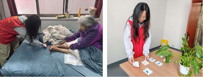 为提升老年群体的居住质量,实践队员开展了宿舍内务整理专项行动。队员们分工协作,对老人房间进行全面清洁与归置,包括铺平床铺、整理衣物、分类摆放物品、擦拭家具等。针对行动不便的老人,队员们重点优化了物品摆放布局,确保常用物品触手可及,切实提升了居住便利性。为了让服务更具针对性,实践队员还为每位老人建立了详细的服务档案,档案内容涵盖老人的基本信息、健康状况、心理状态以及每次服务的具体内容与反馈。通过持续跟踪记录,队员们能够及时调整服务方式,确保每位老人都能得到最贴心的照料。