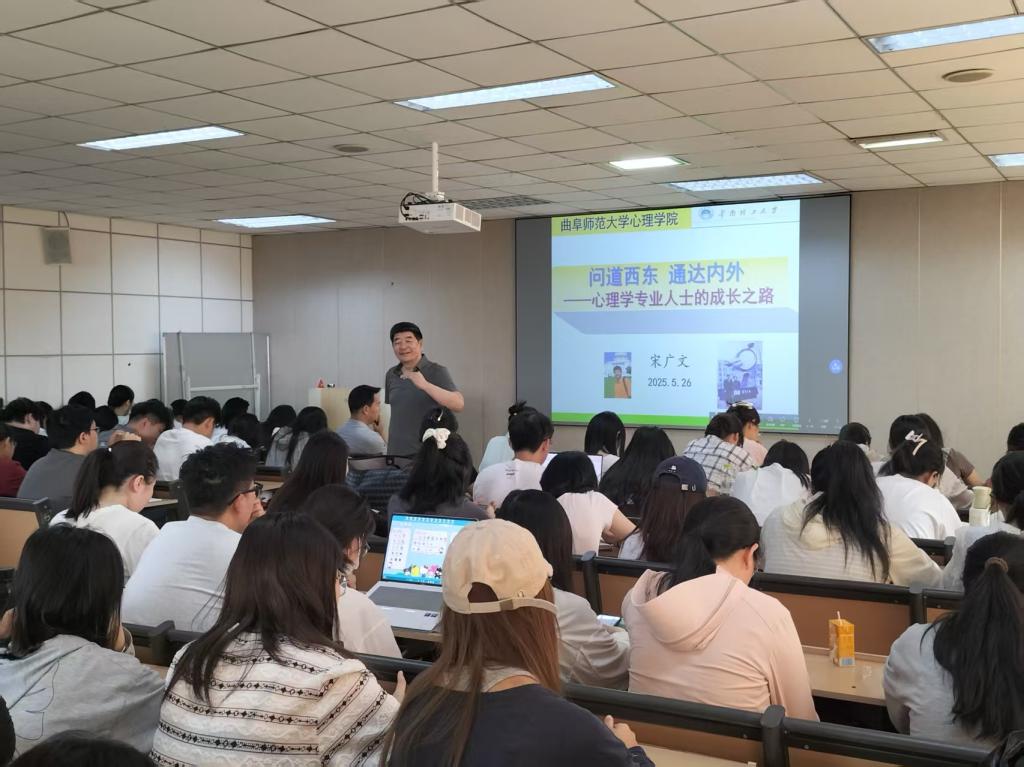 宋广文教授的远见卓识和深厚学养,深深感染了在场每一位师生,“问道西东 通达内外”不仅是学术探索的指引,更是心灵成长的灯塔,激励着学子们以广阔视野和坚定信念,勇攀心理学高峰,成就自我,造福社会。在场的师生们纷纷表示,宋教授的教诲如春风化雨,润物无声,将宋教授的谆谆教诲铭记于心,砥砺前行,以更加饱满的热情投身于心理学的研究与实践,为实现个人价值与社会进步贡献力量。
