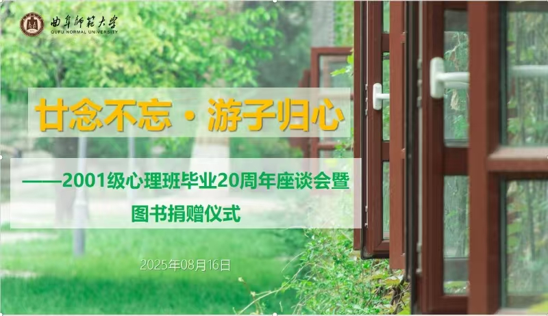 讯(通讯员:薛翠)盛夏的曲园草木葱茏,师道之风绵延不息。8月16日,曲阜师范大学2001级应用心理学本科班23名校友从全国各地重返母校,以“廿念不忘,游子归心”为主题举行毕业二十周年聚会。师生共叙同窗情谊,追忆青春岁月,见证母校发展,为母校七十华诞献上深情礼赞。