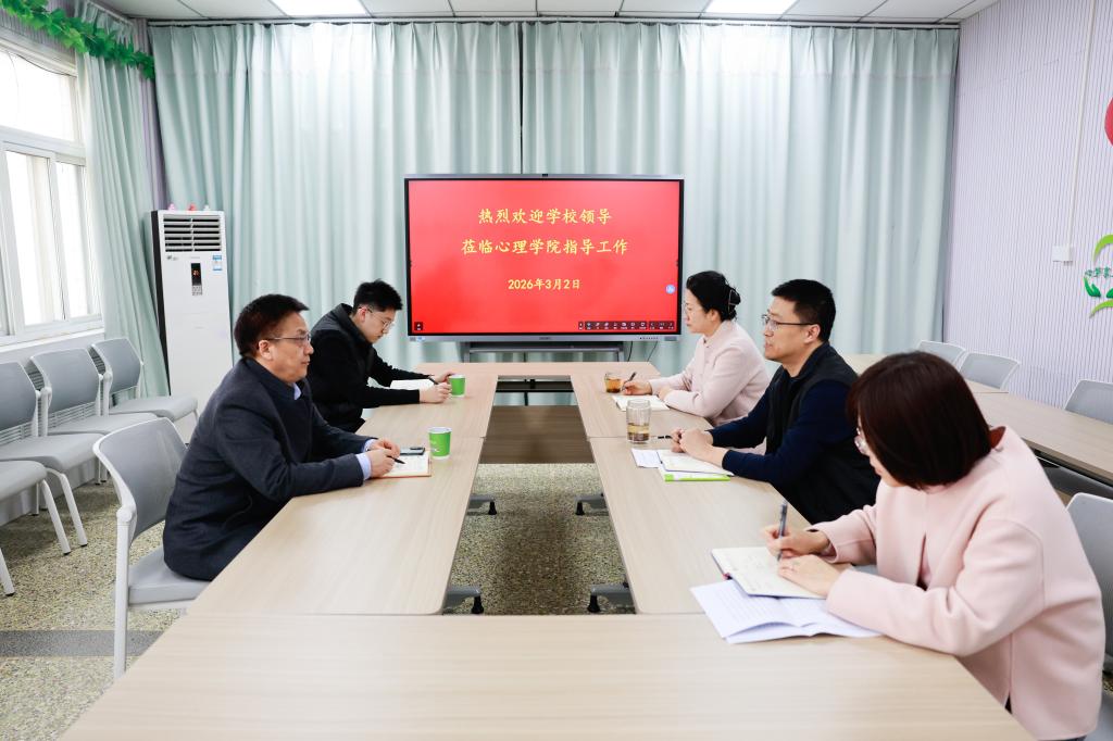 对胡凡刚校长一行的莅临指导表示诚挚感谢,并表示将认真贯彻落实校领导指示精神,以更高站位统筹谋划学科发展路径,聚焦学科特色优势,充分挖掘学科潜力,凝练方向、提升队伍、建强平台,加快形成具有心理学学科特色与核心竞争力的优势学科,着力推进心理学与国家社会需求的交叉融合。学校办公室相关老师陪同调研。