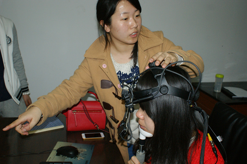 心理学爱好者们首先来到感统训练教室和沙盘活动室,在那里他们知晓了沙盘游戏对于心理治疗的作用。在心理学基础教学实验室,同学们参与了面部表情辨认和空间位置记忆广度实验,在常规仪器实验室同学们操作了镜画仪实验和简单反应时实验。通过趣味性的参与活动,同学们对心理学有了进一步的感性认识。活动的最后一个环节,心理学爱好者们分别观看了眼动追踪和事件相关电位(ERPs)实验的演示。眼动和脑电实验操作流程详细生动的展现,让同学们“亲密接触”了当今心理学最前沿的实验研究技术。